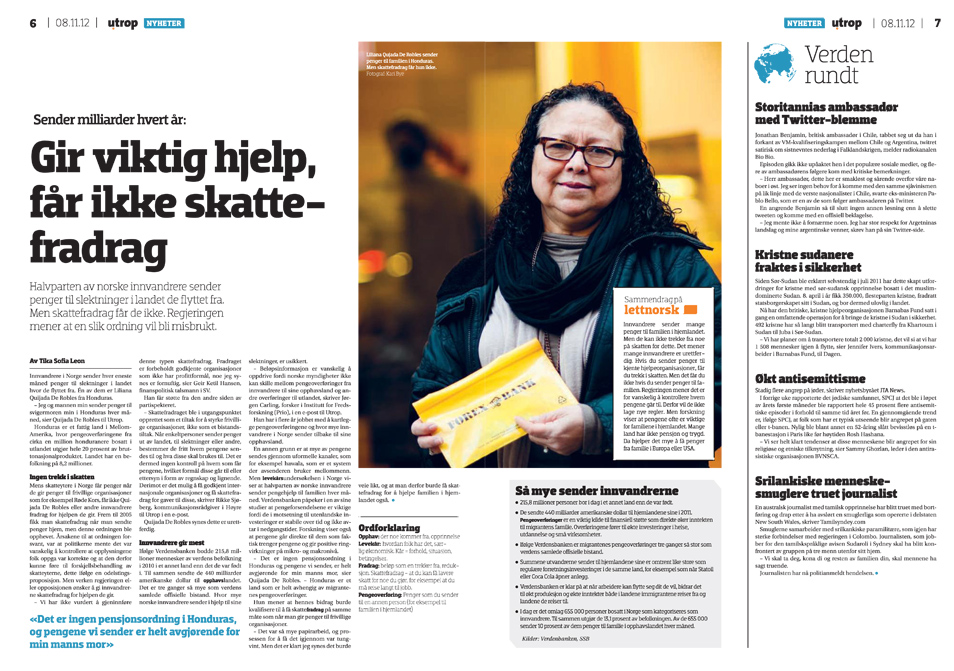 Men det mange innvandrere kanskje ikke vet er at dersom du gir en pengegave til en organisasjon som skal bruke disse pengene på hjelpetiltak i et fattig land, så gis det skattefradrag. Gir du 10 000 kroner til Røde kors’ arbeid i Afrika får du 10 000 kroner i rabatt på skatt på lønnen din. Men er du fra Filippinene og sender 10 000 kroner dit i løpet av året får du ikke rabatt i det hele tatt. Rettferdig? Utrop synes ikke det.