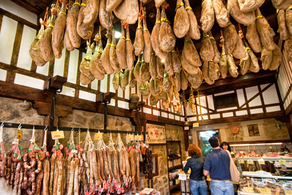I forretningen Hermanos Hoyos i Salamanca henger skinker og pølsevarer ned fra taket. Det er tett med kunder som vet akkurat hva de skal ha.