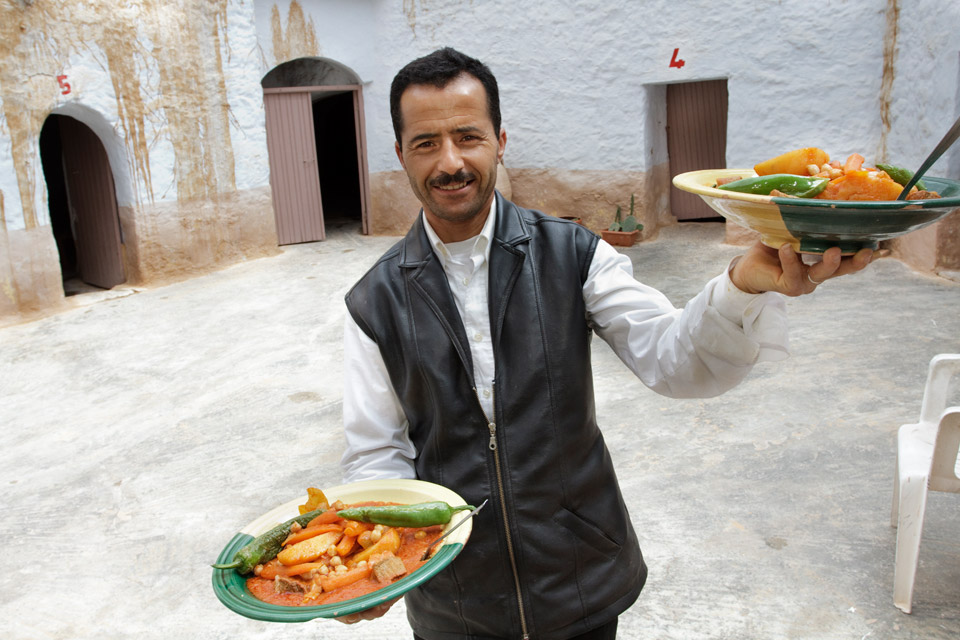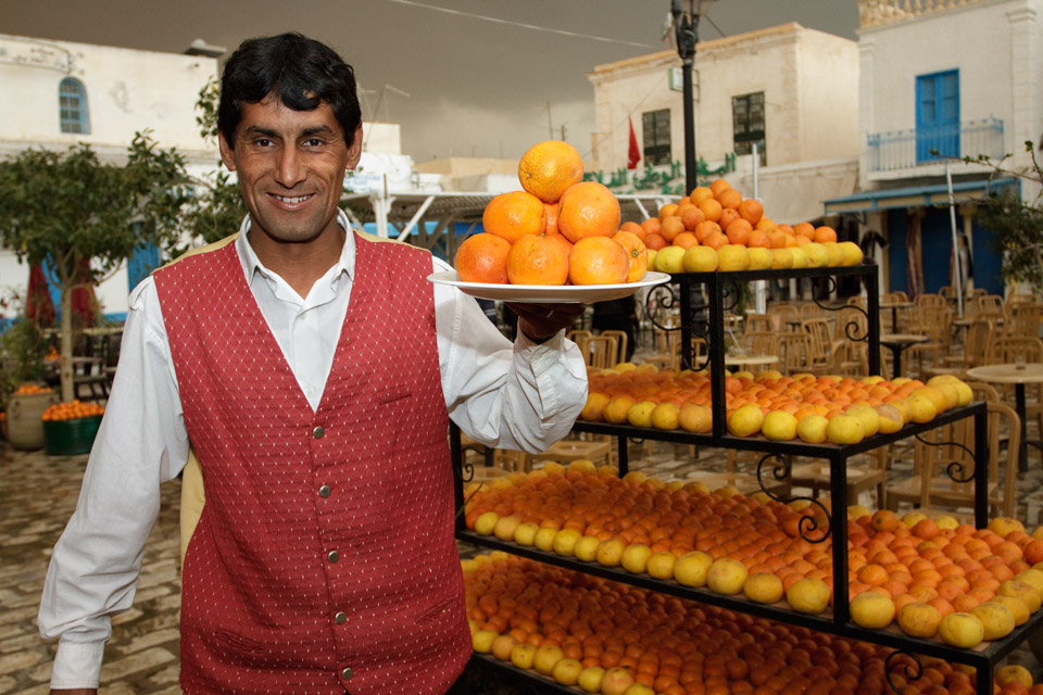 – Her følger vi sesongene. Er det artisjokker på markedet, så bruker vi det, sier Riadh Ferchichi. – Vår mat skiller seg fra andre lands kjøkken ved at den variert og lett. Det er alltid mange retter på bordet. Jeg er kanskje partisk, men tunisisk mat er bedre enn både gresk og indisk mat.
