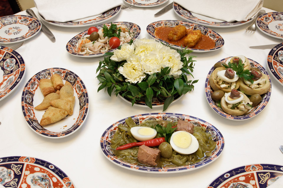 – Jeg tror den arabiske verden har influert det spanske kjøkkenet, men spanierne har også hatt innflytelse på oss, sier hovmesteren og byr på en fylt pepperfrukt, nøyaktig lik dem man får på en hvilken som helst tapasbar i Spania.