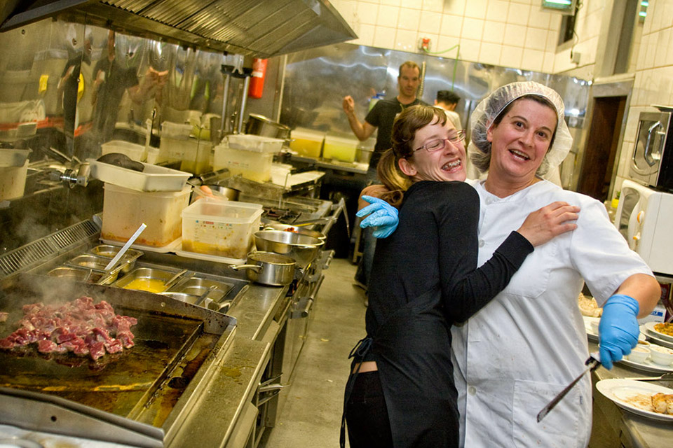 – Ta to flasker vin med det samme du er i farta, ropes det et fra et bord med sultne sjeler.