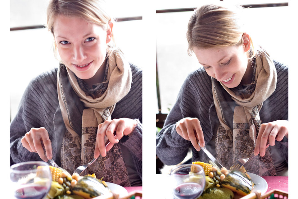 KANARIMAT: Maja Andersson spiser kanarisk kasserolle med geit og mais på pensjonat Don Leandro ved