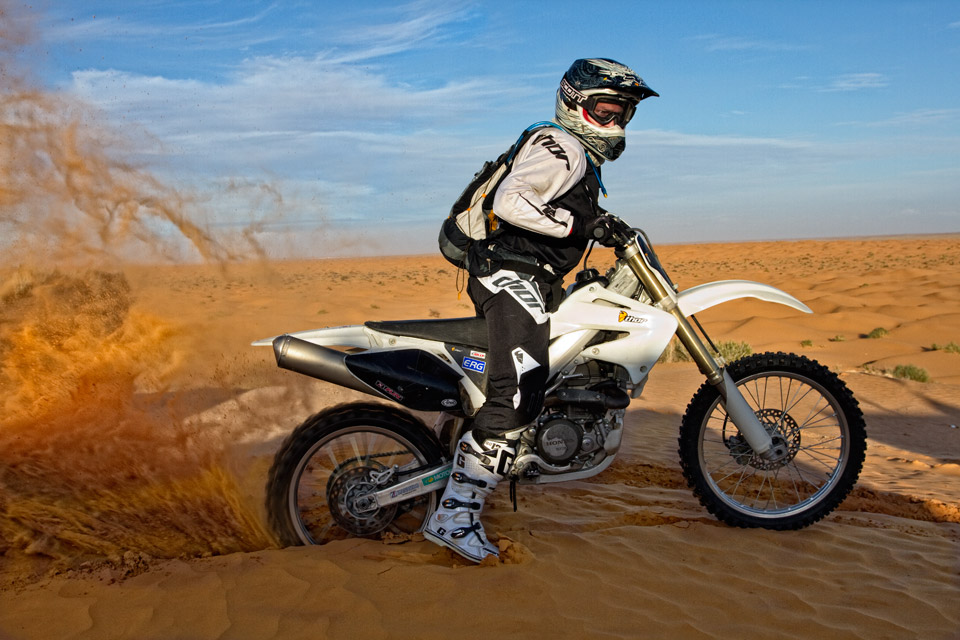 Han har sort tørkle over ansiktet, han er bestemt. Han hiver meg opp på araberhesten, smatter til den og så farer vi utover i røde Sahara. Jeg er kidnappet av en beduin. Så for riktig å markere hvem som sjefen, stiller han seg på to på hesteryggen bak meg. Jeg er i ferd med å dåne. Jeg tenker at jeg i hvert fall kommer til å lande mykt om jeg faller av hesten.