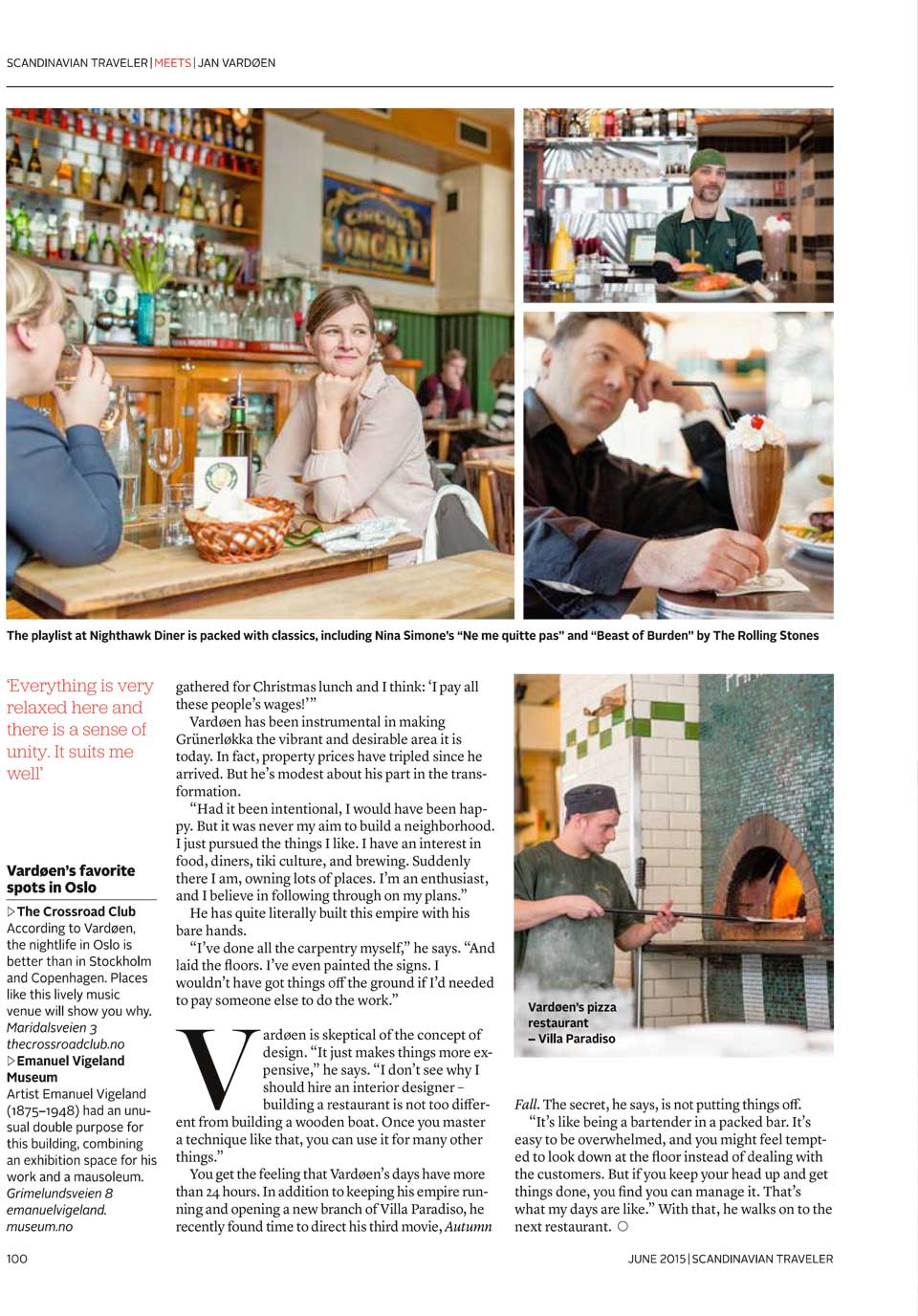Jan Vardøen breathes in the scent of the old streets of Grünerløkka, Oslo. It’s a heady mix of wood lacquer, leather and freshly baked bread. Within just a few blocks are no fewer than ten businesses he’s built up literally by hand. Sporting a black shirt that Johnny Cash would have been proud of, he walks between his bars and restaurants. Style comes naturally to Vardøen, and you can see inspired vintage touches from the 1940s, 50s and 60s in all the places he’s touched.
