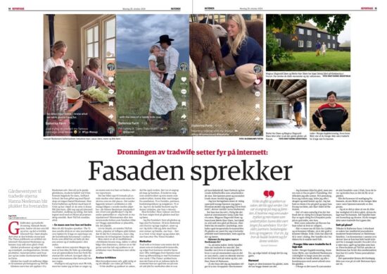 Tradwifedronnina setter fyr på internett: Fasaden sprekker i Samfunn på 09/10/2025 09/10/2025 0 Like this 2 Views (NATIONEN): Gårdseventyret til tradwife-stjerna Hanna Neeleman blir plukket fra hverandre. Les mer