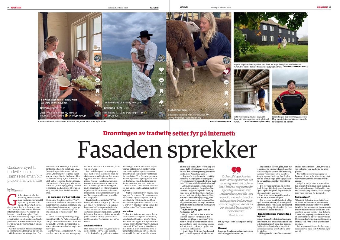 Gårdbruker og tradwife dronning, Hannah Neeleman, høster nå mer enn kålog urter, og det er kritikk. Internett har i høst eksplodert etter at den britiske storavisen The Times publiserte en artikkel om